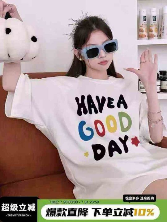 全清:5.9元2025新款夏季正肩纯棉短袖T恤女时尚百搭洋气减龄显瘦上衣 中长...