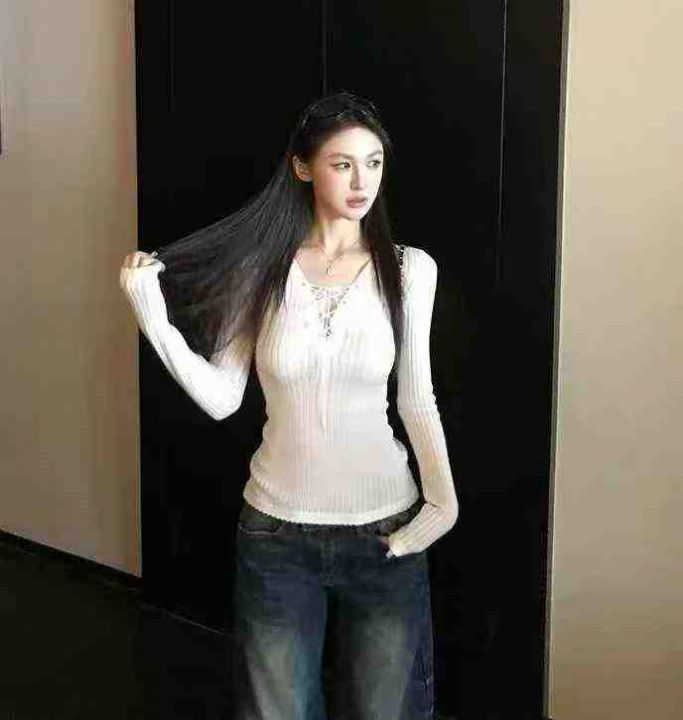 包芯纱V领交叉系带纯欲辣妹针织衫打底外穿上衣,独立包装,均码,260件,清...