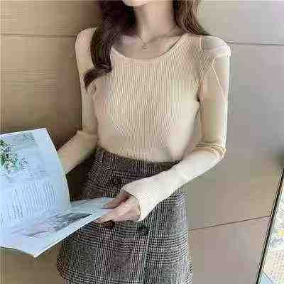 包芯纱秋冬露肩网红个性时髦内搭修身长袖针织衫女潮,独立包装,均码,330...