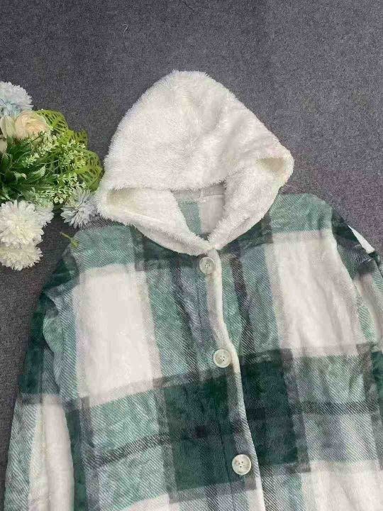 117件连帽格纹毛绒外套。单款单色,面料柔软舒适保暖,品质好。S一2XL,独立...