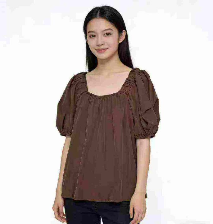 韩系甜美温柔风圆领泡泡袖上衣,整款两色,独立包装 1-2码(S- M)216件清...