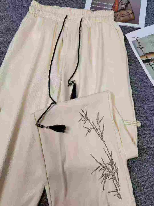 [福]国风竹子刺绣冰丝垂感休闲长裤,总数量:410条左右,码数:S-2XL码,有独...