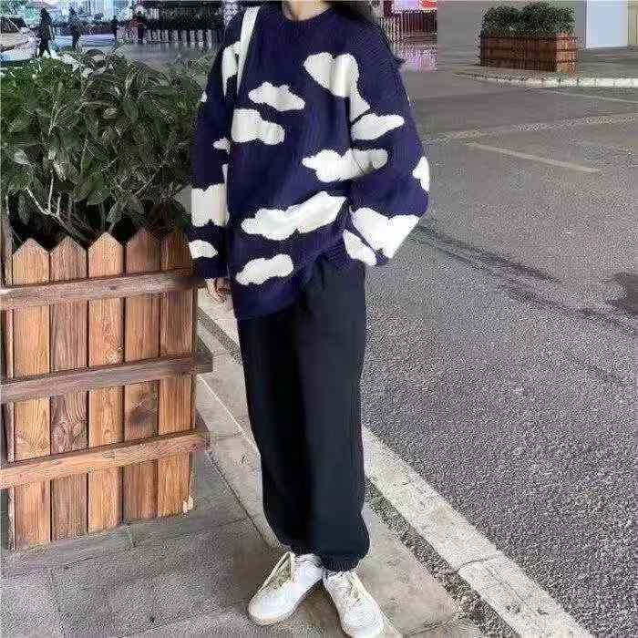 复古云朵针织毛衣129件9.8,面料柔软舒适,有弹力,情侣宽松版,有份量,均...
