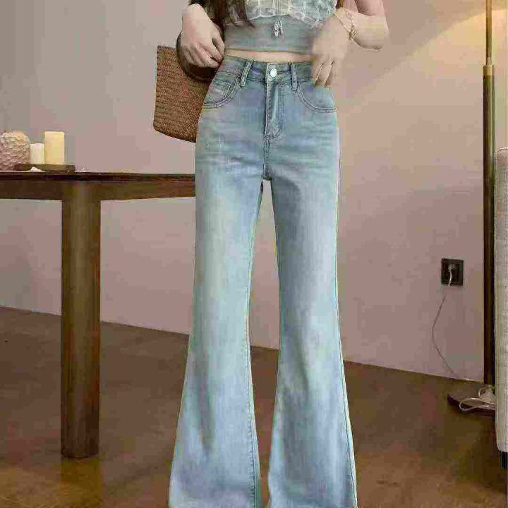 ☕️高弹力浅色微喇牛仔裤女高腰显瘦百搭直筒喇叭 九分裤400条全清12.8元,...