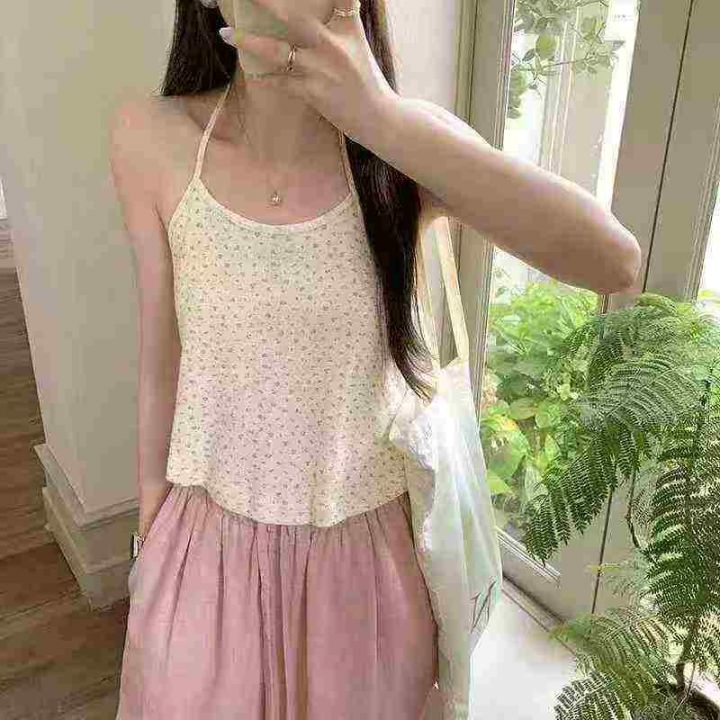 全清3.8元天猫在售款543件高品质清新甜美纯欲风碎花绑带挂脖背心,螺纹纯棉...
