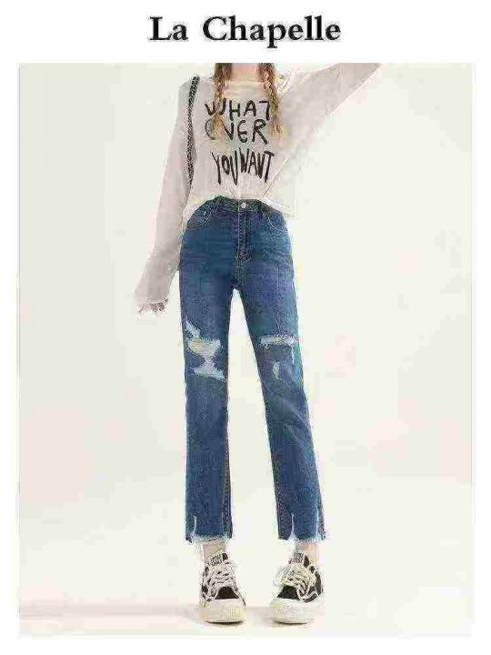 ☕️高弹力设计感破洞牛仔裤女夏季新款显瘦高腰直筒九分烟管裤140条全清12....