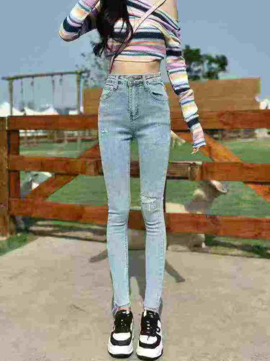 破洞牛仔裤子女高腰紧身弹力小个子显瘦毛边小脚裤210条全清8.8元,码数XS到...