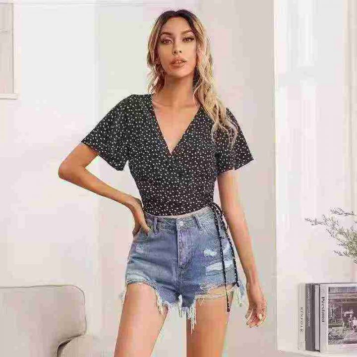 [月亮]:5.5清423件[月亮]:欧美辣妹深V绑带碎花上衣[月亮]:S-XL,独立包...