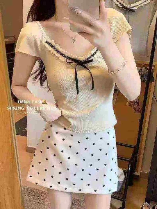 法式蕾丝拼接短袖499件6.5,面料柔软有弹力,蝴蝶结蕾丝花边,码数1-4码(S...