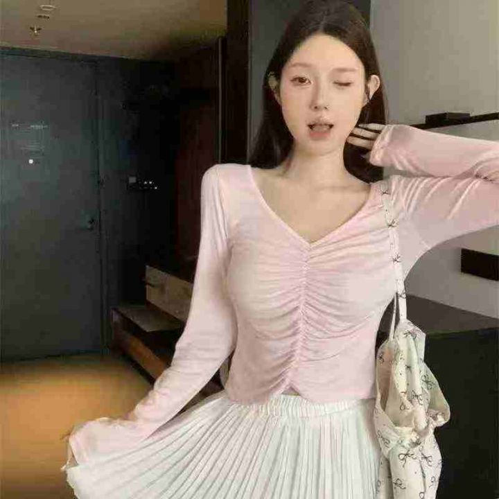 设计褶皱锁骨长袖辣妹修身新款收腰显瘦针织上衣,独立包装,均码,380件,...