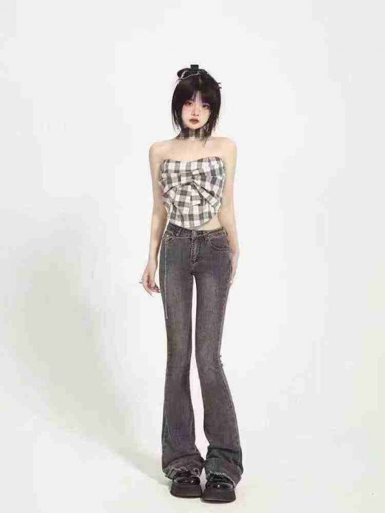 灰色辣妹微喇牛仔裤春秋2025新款高腰显瘦直筒大码马蹄毛边喇叭裤子851件,...