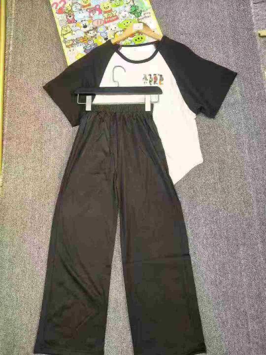 全清6.890套夏季女装休闲时尚两件套套装 弧形下摆短袖T恤+直筒裤,码数S....