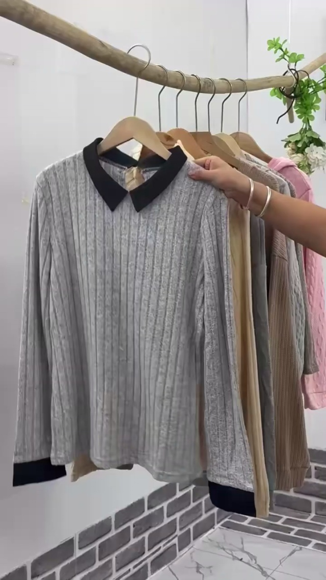 撞色方领打底衫女内搭可外穿螺纹高级感长袖T恤修身上衣,M-2XL,350件,独...