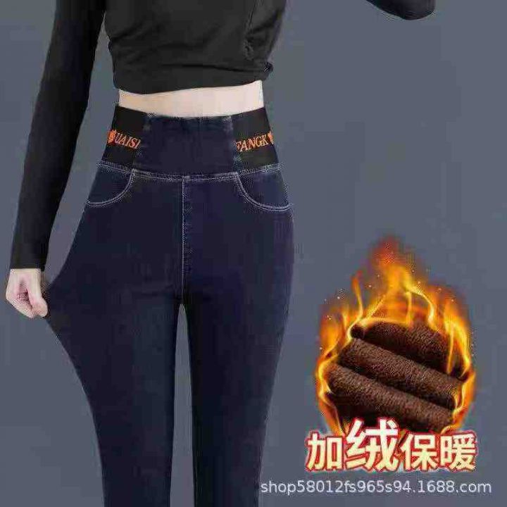 高弹力松紧腰加绒加厚女士铅笔牛仔裤,独立包装带吊牌,码数26-34,数量470...