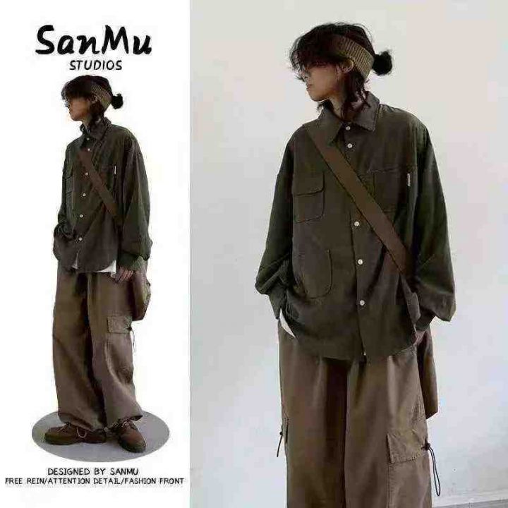 全清价10.8春秋季日系复古宽松工装衬衫男女生麂皮绒基础款多口袋休闲外套潮...