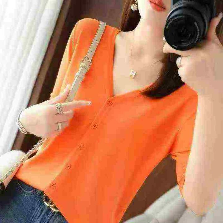 170多件品牌薄款女V领宽松显瘦百搭纯色针织开衫外套,尺码:S~XL,实体店...