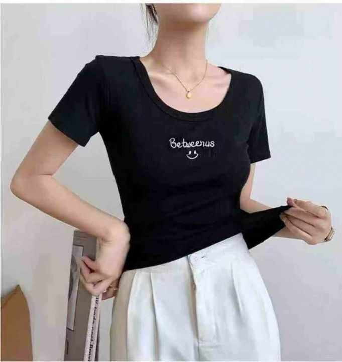 全清价6.8螺纹短袖t恤女夏时尚刺绣百搭修身辣妹上衣,独立包装,均码,整款...