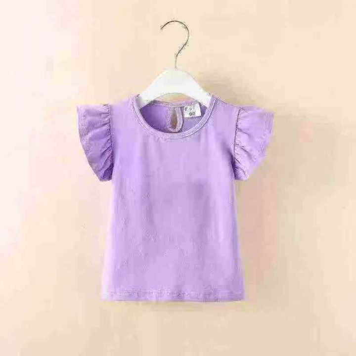 全清4.9韩版夏季儿童装短袖T恤2025女童上衣宝宝无袖甜美纯棉飞飞袖洋气,10...