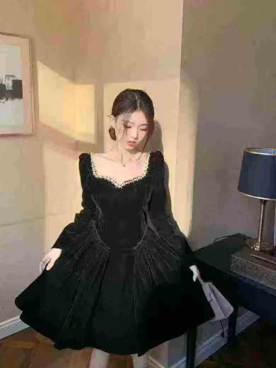 全清8.8法式复古赫本丝绒连衣裙女秋冬显瘦气质女神范高级设计感小众裙子104...