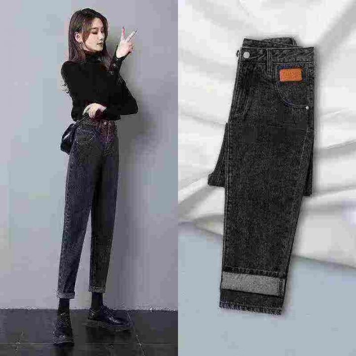 冬季加绒女士高腰显瘦百搭哈伦弹力老爹牛仔裤,整款2色,独立包装,数量260...