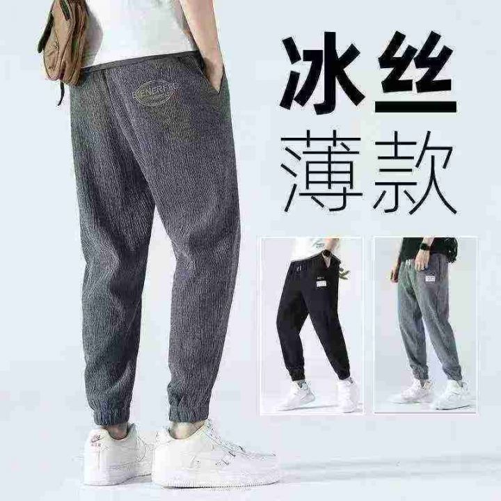 裤子男夏季薄款冰丝韩版潮流修身束脚运动裤裤,整款3色,独立包装,货品干...