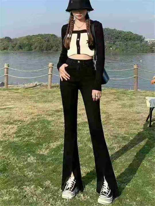 清9.8黑色开叉微喇牛仔裤女春秋季新款爆款喇叭裤,带弹力,数量800件,码数...