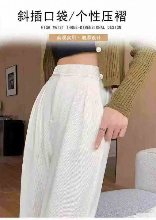 ☆838款,设计感少女靓妹女装灯芯绒双扣拉链款松紧腰高腰阔腿裤,905件,S-...