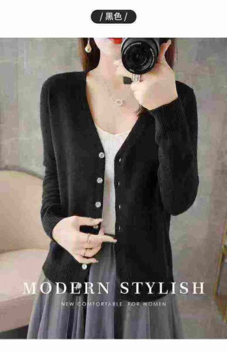 早秋新款百搭V领针织衫开衫外套短款毛衣外套上衣纯色外搭,152件,包芯纱面...