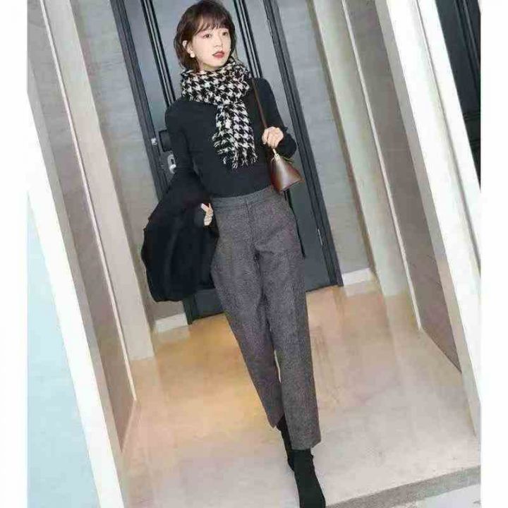 女裤2025秋冬棕咖色深灰色人字纹毛呢西裤女九分烟管裤,独立包装,图色图款...