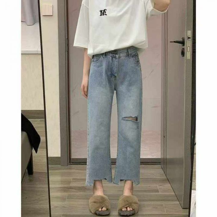 春秋新款复古网红破洞可调节直筒阔腿牛仔裤,独立包装带腰卡,码数S--2XL码...