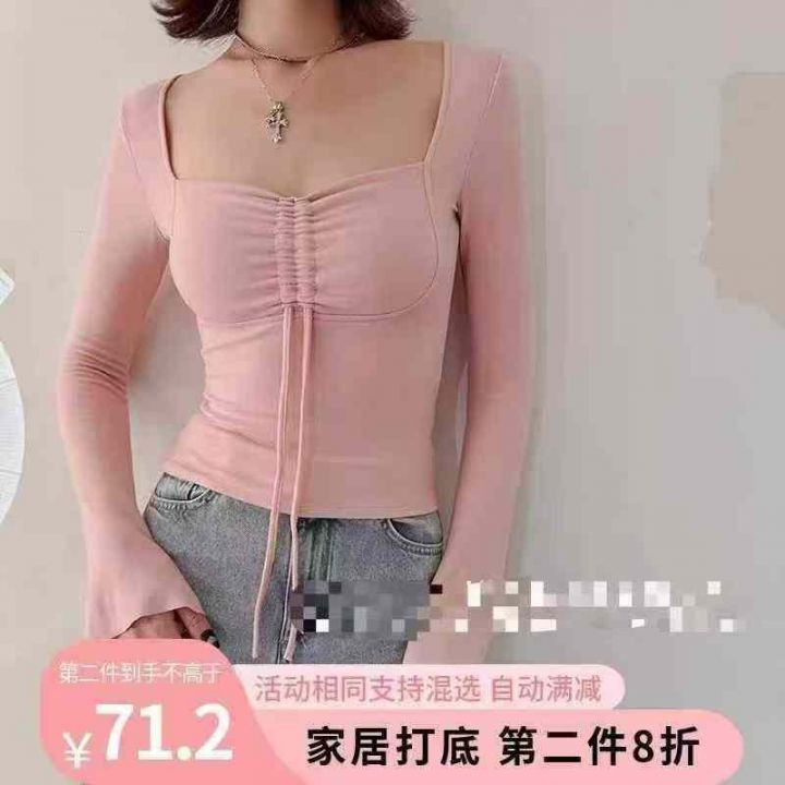 [月亮]:7.5清177件(不分货)[月亮]:纯欲系带不规则袖口辣妹长袖上衣[月...