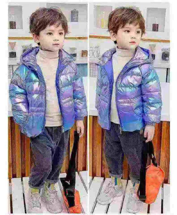 1000件男女童装外套荧光渐变亮面炫彩羽绒服,整款多个颜色,独立原包装带吊...