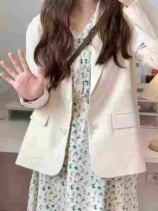 100件杏色西装外套女小个子春秋季新款今年流行高级感炸街宽松休闲西服,单...