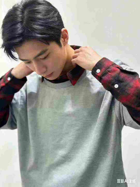 新款潮牌格子假两件长袖T恤男高街复古宽松圆领青少年体恤上衣男,数量3400...
