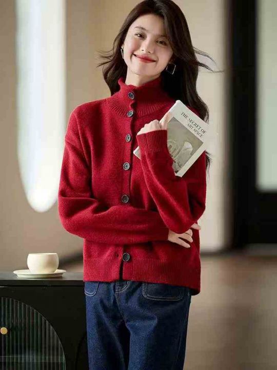 全清13.8,秋冬韩系慵懒风立领长袖针织开衫上衣女装宽松显瘦软糯厚...