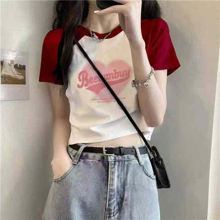 夏季新款甜辣妹提花小众减龄bm别致插肩爱心字母针织短袖T桖,独立包装,均...