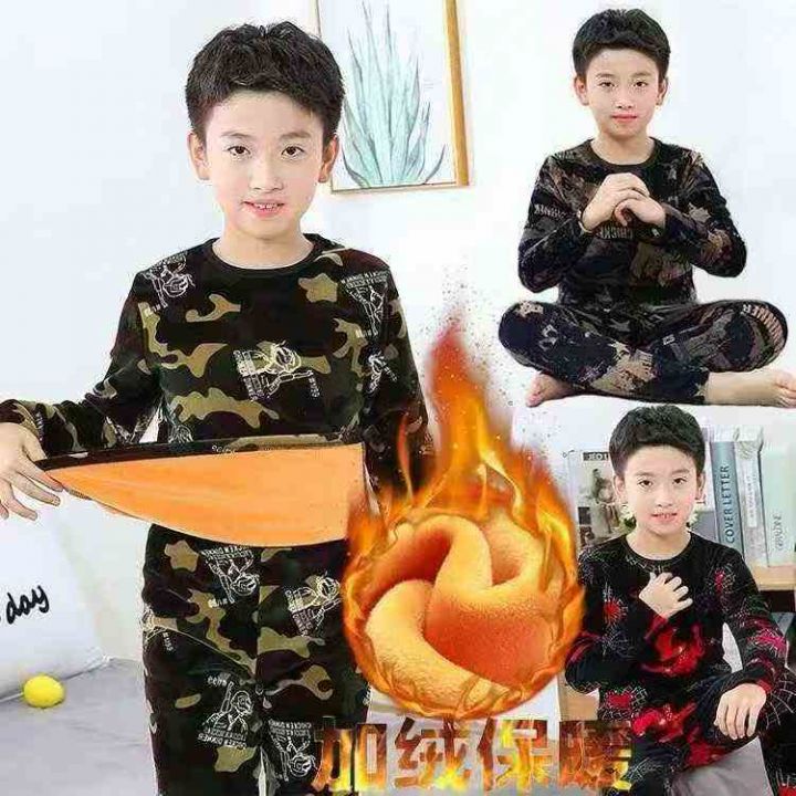 儿童保暖内衣加绒加厚套装双面银狐绒男童新款秋衣秋裤防寒内衣冬,整款多花...