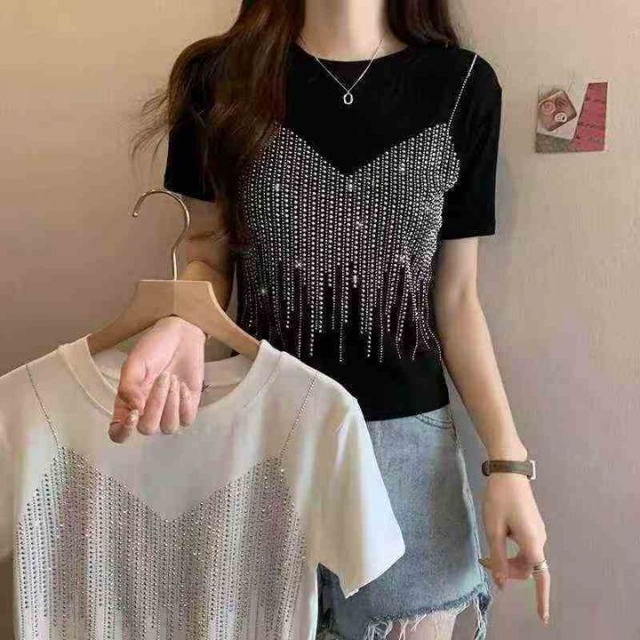 Bling Bling辣妹T恤☕️6000件全清12.8元,100件起分货13.8元,重工烫钻超...