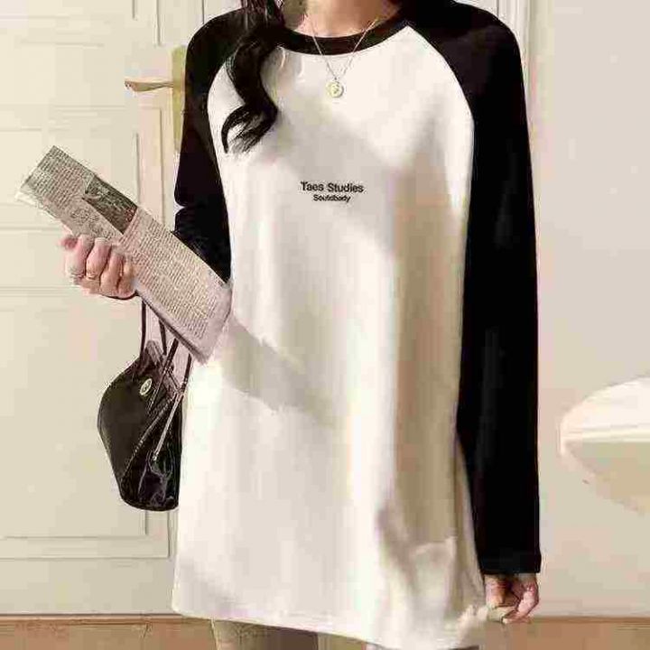 1055件高品质韩系靓妹大版宽松休闲气质长袖T恤上衣,纯棉后领包边,小整杂...