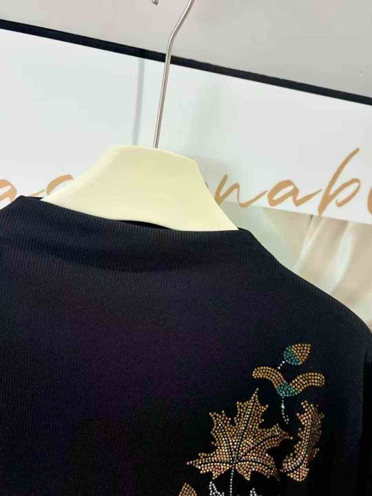 150件左右金枝玉叶镶钻长袖女装修身打底衫长袖内搭亮钻黑色t恤百搭潮,面料...