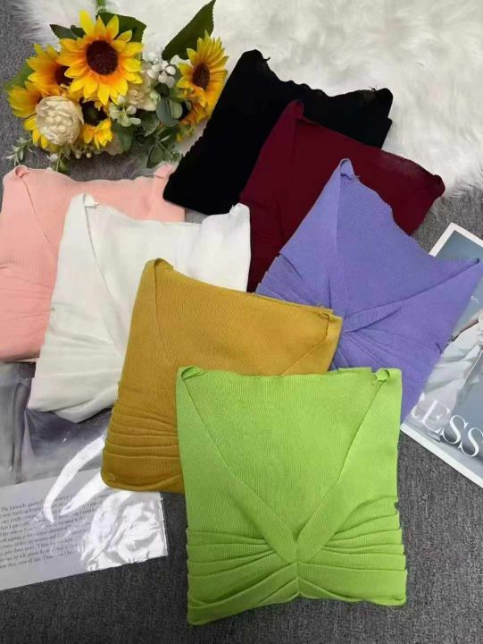 捡漏款,秋季新款弹力修身显瘦V领褶皱套头毛衣,独立包装,单款多色,均码...