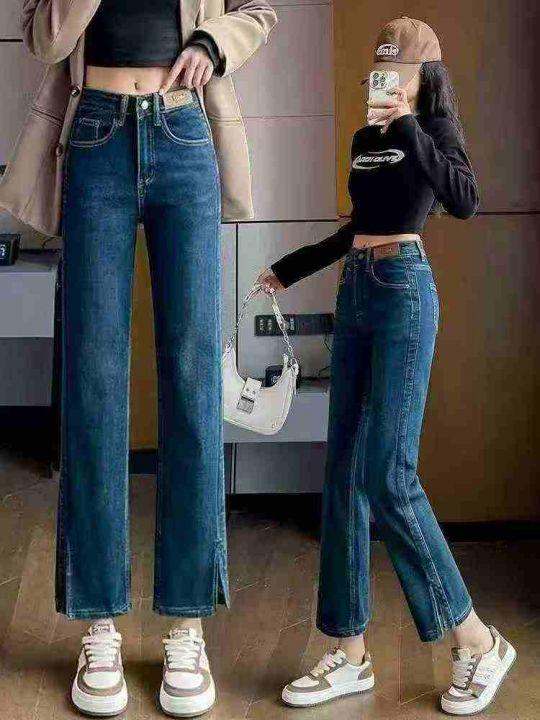 ☕️高弹力直筒牛仔裤女新款春秋宽松弹力显瘦高腰法棍裤九分烟管裤268条全...