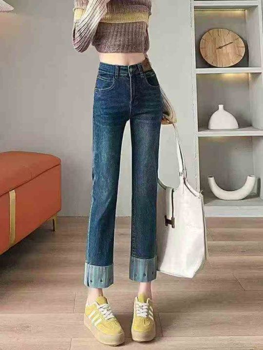 ☕️高弹力翻边直筒牛仔裤女新款高腰牛仔烟管裤子260条全清12.8元,只有蓝...