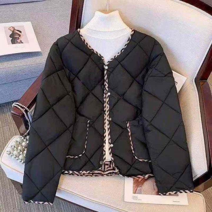 806件\'洋气复古小香风轻薄羽绒棉,新款女士妈妈装拼色圆领棉服外套女,独...