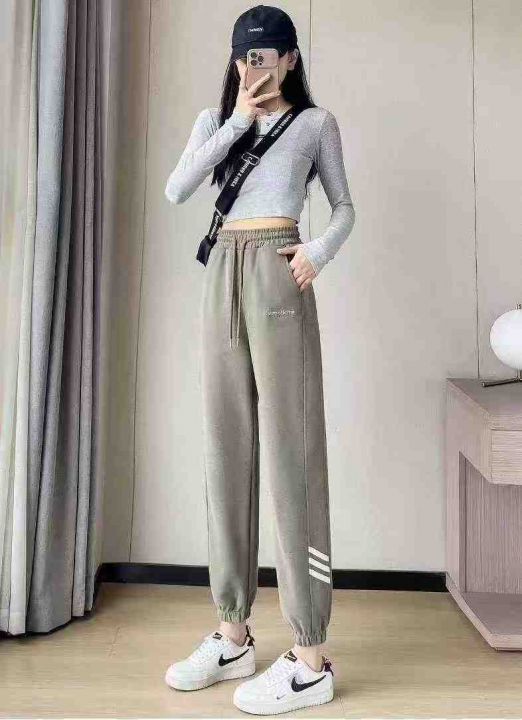全清8.8元天猫在售款120件高品质春秋款棉质三条杠高腰宽松刺绣束脚卫裤,单...