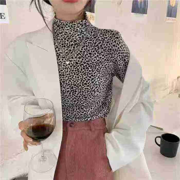 ☕️辣妹豹纹半高领打底衫T恤女时尚洋气百搭设计感上衣225件全清7.8元,均...