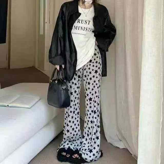 时尚潮流休闲豹纹星星条纹直筒裤,基本图片款,品质好,数量150件左右,码...