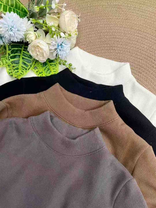 夏别致小圆领纽扣修身短袖t恤,整款多色,高弹力,领口有包边,面料厚实有...
