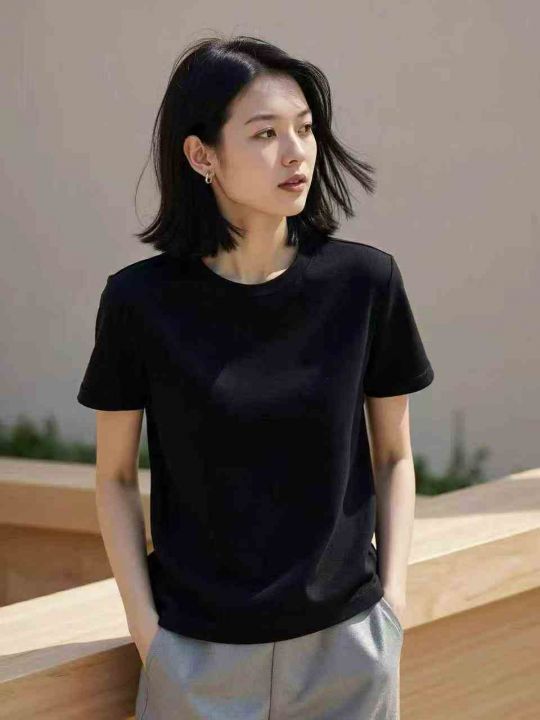 ✅214件女夏季气质宽松百搭圆领短袖体恤,尺码S-XL ,冰丝螺纹面料,亲肤舒...