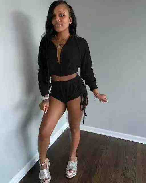 8.8清时尚辣妹金丝绒连帽长袖拉链开衫上衣休闲短裤两件套,数量:102套,码...